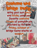 Please use the SCBC Event Registration app to sign up. Click here . The deadline for signing up is Wednesday, October 22th. Please note that brunch reservations cancelled after this deadline are responsible for the $10 brunch cost. Halloween Party & Game - October 31 Come to our Halloween Party on Friday, October 31 in your favorite costume. There's going to be TREATS (extra points), TRICKS and PUMPKIN PIE.